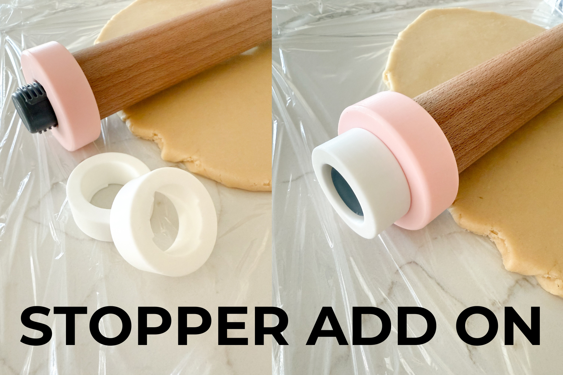 STOPPER: do you find your guide sets constantly falling off due to usage? ive created the stoppers so that the rolling pins can stop falling off but still stay in place (may have some wobble but overall should give you the cookie dough thickness you need). These are meant to work with the guide sides that ive specifically created. I am not sure if it works with other guides.
